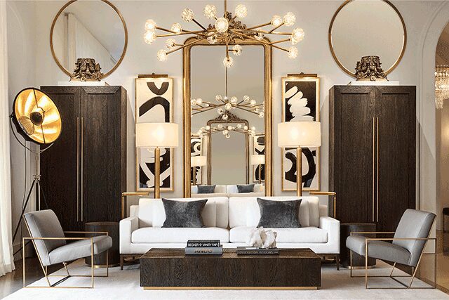 On level one, guests walk through a 25-foot-high threshold of glass and steel into a central hall with 14-foot-tall ceilings. Here, inside barrel-vaulted passageways, gallery-like rooms illuminate RH Interiors collections. One floor above is RH Modern, a vast assemblage of furnishings, lighting, textiles, and accessories, as well as the interactive RH Design Firm & Atelier and RH Rugs salons.