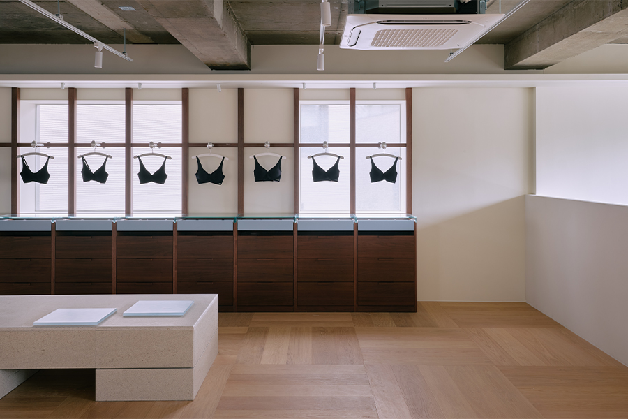 Wood, marble, and concrete come together at lingerie and activewear brand Verish Anguk