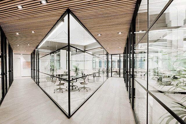 Canopy Jackson Square, San Francisco: Following the success of their first space in Pacific Heights, cofounders Steve Mohebi, Amir Mortazavi of development company M-Projects, and Swiss designer Yves Béhar joined forces yet again for the recently opened Jackson Square location. “Our members are attracted to our design and experience, and the community they meet [here],” adds Mortazavi. He and Béhar imbued the space with blush furnishings and pastel walls to contrast black surfaces, exposed concrete, and slatted wood ceilings for a unique tranquil retreat.