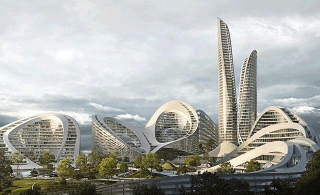 Rublyovo-Arkhangelskoye Smart City, Moscow: Zaha Hadid Architect’s forthcoming smart city offers a dynamic, energy-efficient new hub for the rapidly growing Russian capital. Located west of the city, the 1,100-plus acre neighborhood will help mitigate congestion by creating homes for 66,500 residents and making room for new schools, medical clinics, office spaces, transport infrastructure, and shopping districts. More than 40 million square feet of new buildings will surround abundant parks and forests, with a lake at the center for a sense of openess that is at the core of the “people-centric” design.